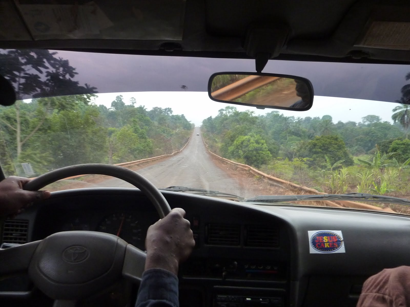 We drove on, holding tight and praying that we'd arrive safely - Cameroon drivers aren't known to be cautious and there are many very serious accidents on this road.